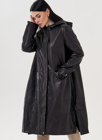 Длинный кожаный плащ с капюшоном