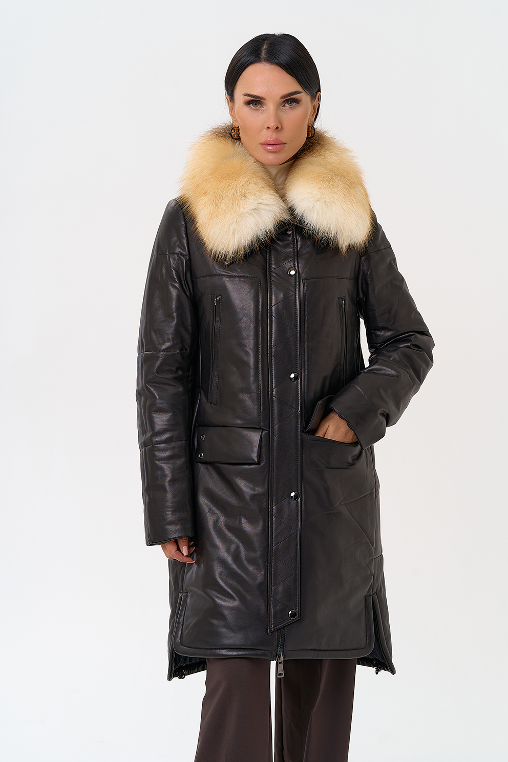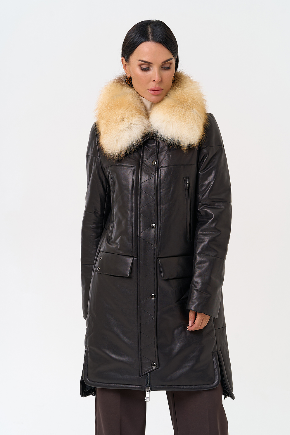 Пуховик из натуральной кожи