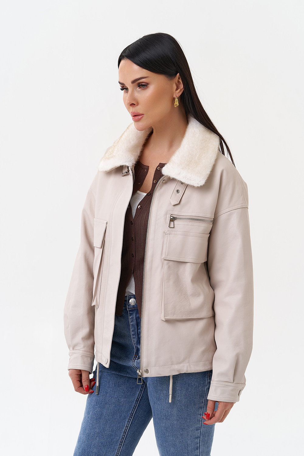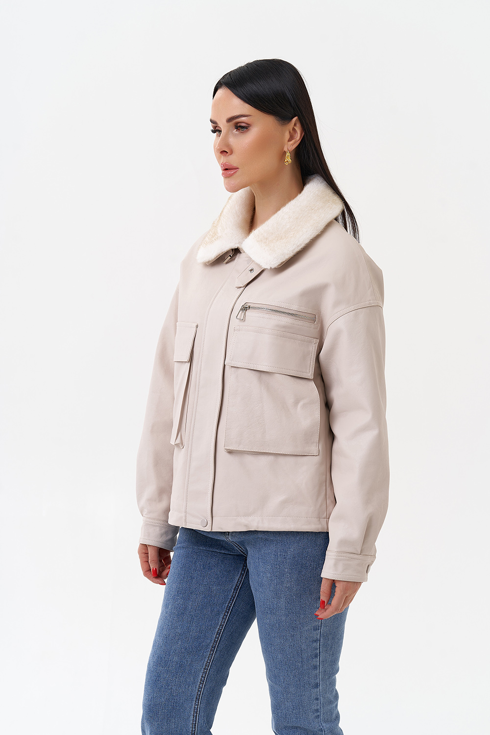 Крой воротника - отложной, отделка эко мех